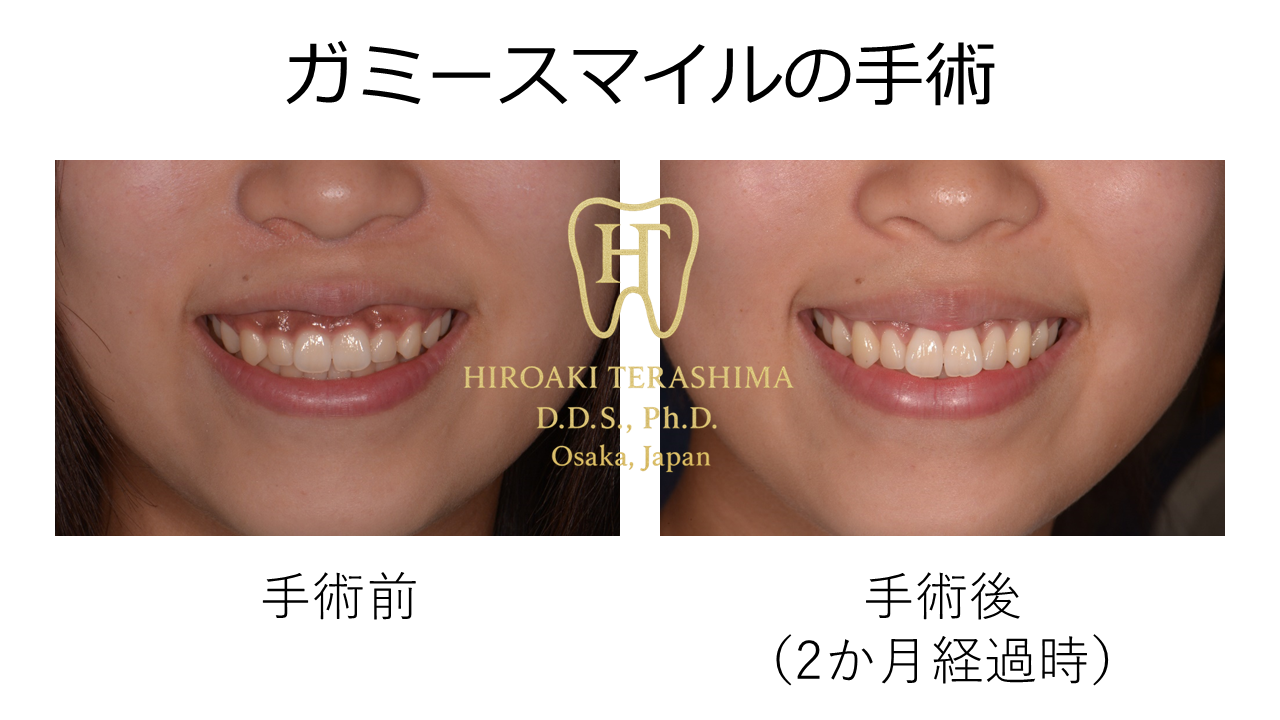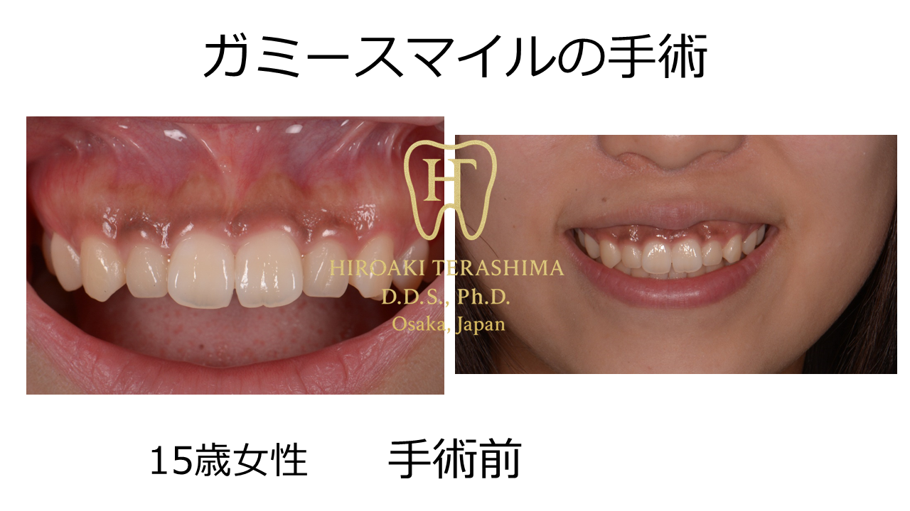 まずは矯正専門医に相談を依頼しましたが、「矯正治療で長期にわたって改善を図るよりも、オペで簡単に治るのであればまずは試してみてもよい」と矯正医からアドバイスをいただき、ご本人とお母様のご希望もあり、外科的な 歯肉整形治療 を選択しました。