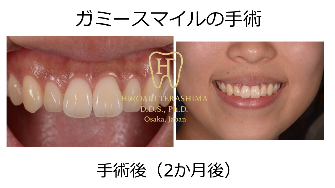 2か月後には歯肉が大変美しい状態に整い、自然なスマイルラインを獲得。患者様とお母様の満足度も非常に高い結果となりました。