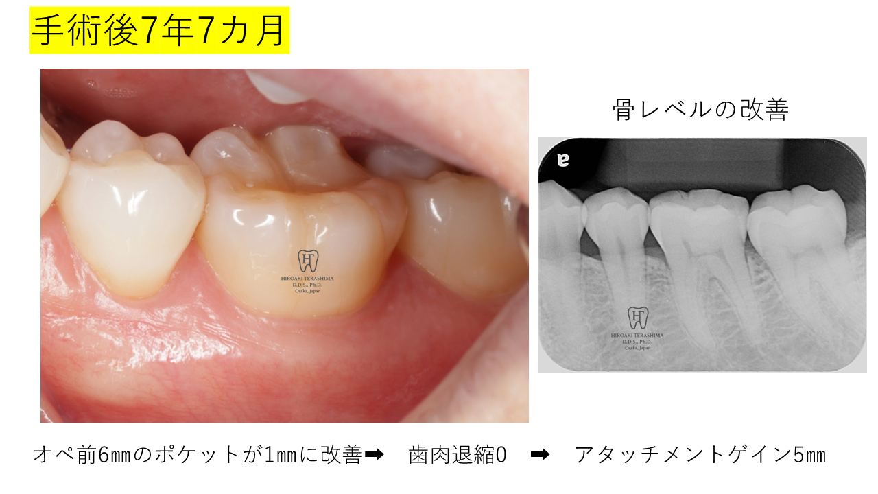 右下6番と同日に行った左下6番のケースでも、7年以上良好な状態が続いており、極めて価値の高い結果です。