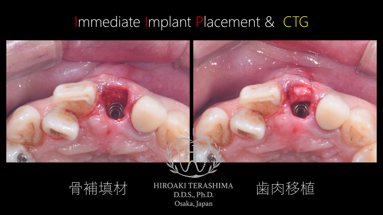 **抜歯即時インプラントと歯肉移植(CTG)**により、-
