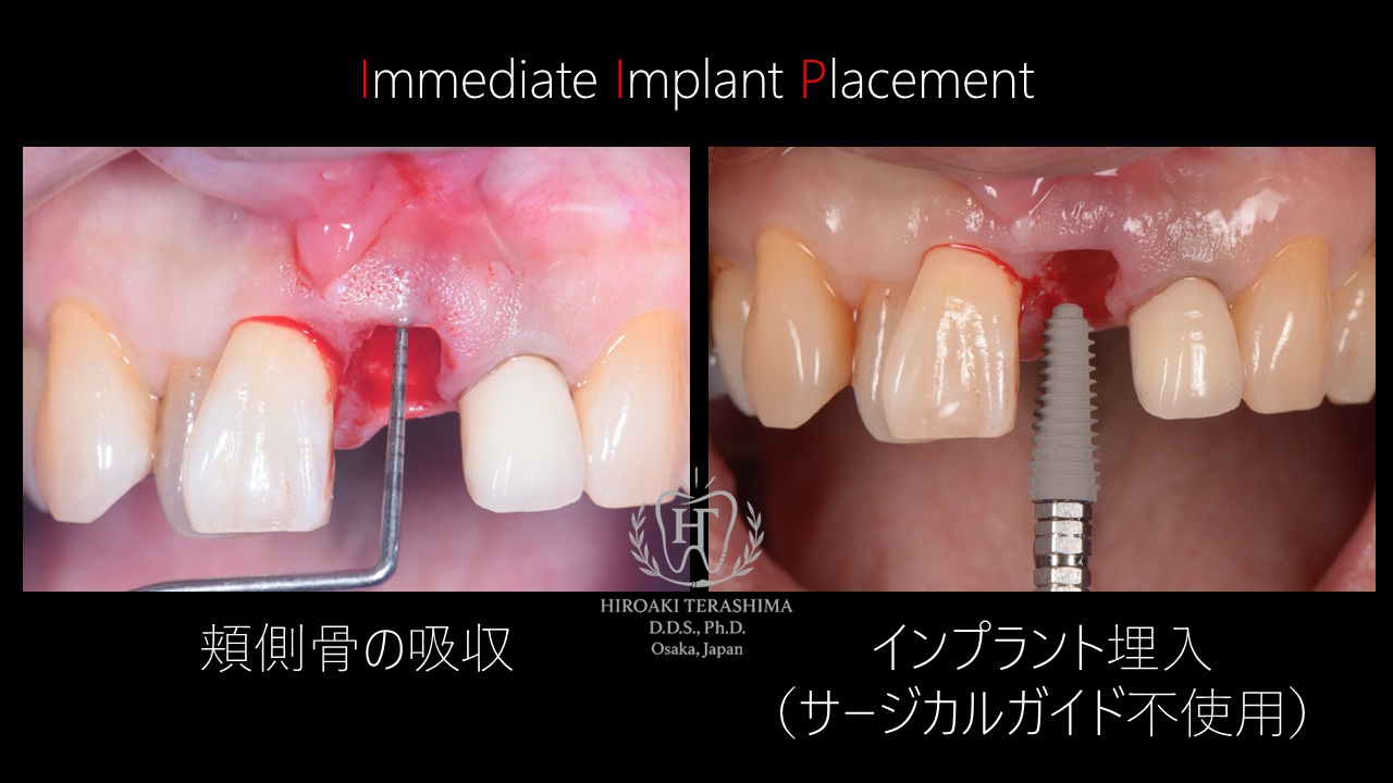 前歯部は、抜歯後に時間を空けると骨と歯肉の吸収が進行しやすい部位です。その結果、インプラント治療が難しくなったり、見た目の回復が困難になることがあります。