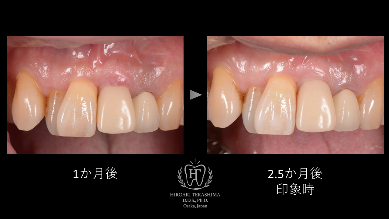 前歯部インプラントにおいて重要な「歯と歯肉の調和」が得られた症例です。