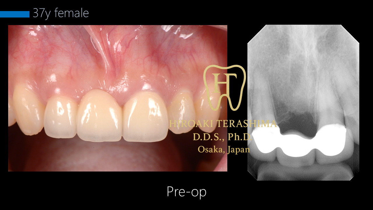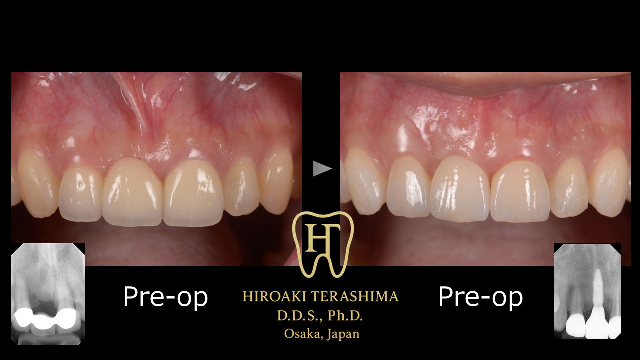 2026/02/16前歯ブリッジの痛みを改善し、インプラントで審美回復 ~骨が狭い症例に対する同時骨造成(GBR)+歯肉移植(CTG)併用インプラント治療