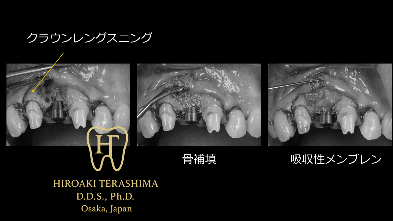 オペ:インプラント埋入同時骨造成(GBR)+ 結合組織移植(CTG)+ 右上2番クラウンレングスニング